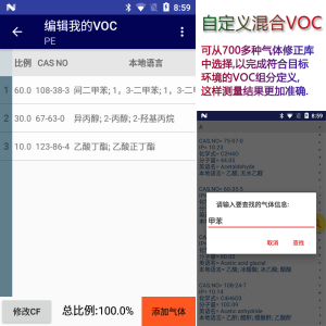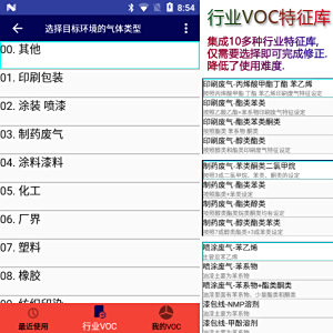 CF/RF 修正系数 | 集成: 748种VOC气体的修正值,可通过CASNO、中文名称、英文名称、化学式查询。 集成: 印刷、喷涂、涂装、制药、橡胶、塑料、印染等等行业修正组。 |