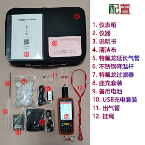 配件丰富实用的标配件:高温检测杆、备用电池、25个特氟龙过滤器等,可满足绝大多数应用 | 质量和服务 |